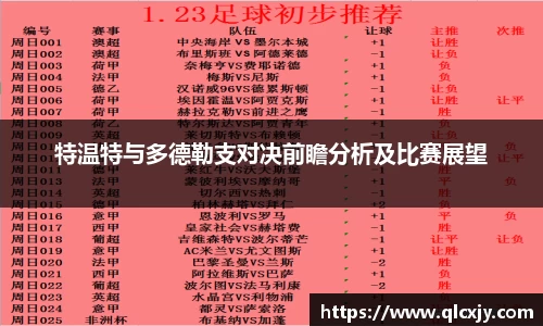 在当今足坛,尤文图斯与皇家马德里两支球队都以其悠久的历史和辉煌的战绩吸引了无数球迷的关注。本文将对这两支球队的最新排名进行深入分析,并展望他们在本赛季的表现。通过对各自阵容、战术风格、近期状态及未来赛程等方面的对比,我们可以更好地理解这两队在竞争激烈的联赛中所处的位置,以及他们为争夺奖杯所做出的努力。本篇文章旨在全面呈现尤文图斯与皇家马德里的对比情况,帮助读者洞悉当前欧洲足球格局中的重要变化。 ...